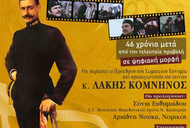 Η προβολή της ταινίας «Ο Παύλος Μελάς» θα γίνει παρουσία του πρωταγωνιστή κ. Λάκη Κομνηνού.
