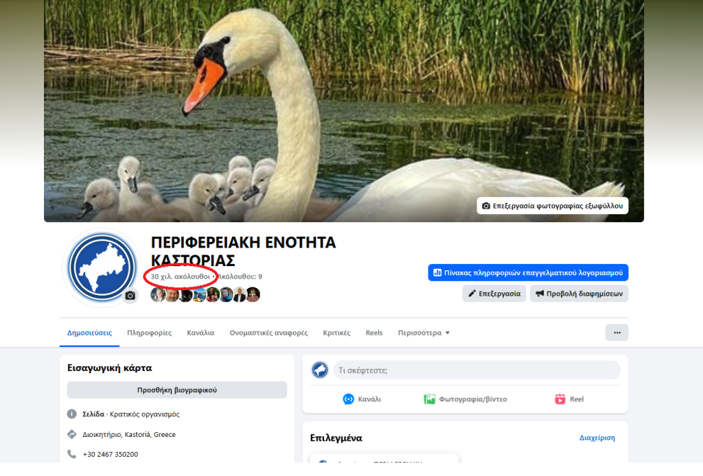 Η επίσημη σελίδα της Περιφερειακής Ενότητας Καστοριάς διαθέτει σήμερα πάνω από 30.000 φίλους και καταγράφει εντυπωσιακά αποτελέσματα για το διάστημα από 1 Ιανουαρίου έως και σήμερα: