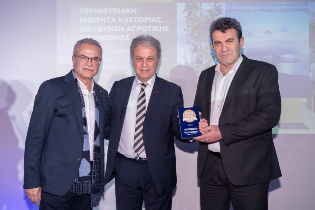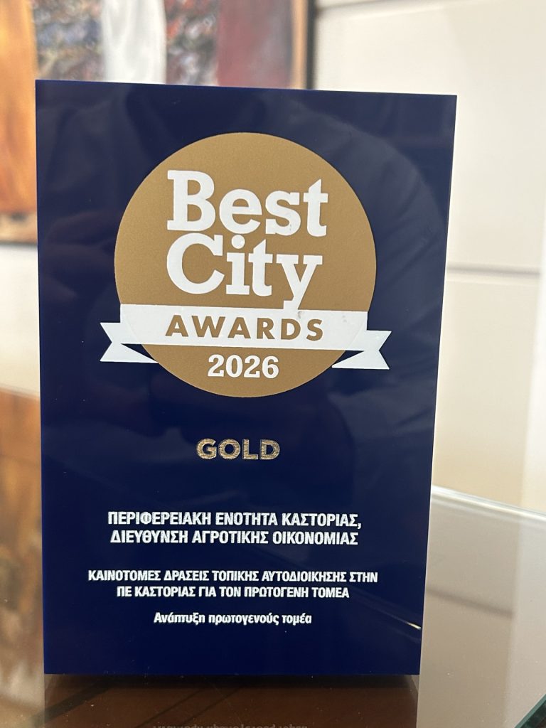 Με Χρυσό Βραβείο (Gold) διακρίθηκε η Περιφερειακή Ενότητα Καστοριάς στα Best City Awards 2026, στην κατηγορία «Ανάπτυξη Πρωτογενούς Τομέα», με τίτλο διάκρισης «Καινοτόμες δράσεις τοπικής αυτοδιοίκησης στην Π.Ε. Καστοριάς για τον πρωτογενή τομέα».