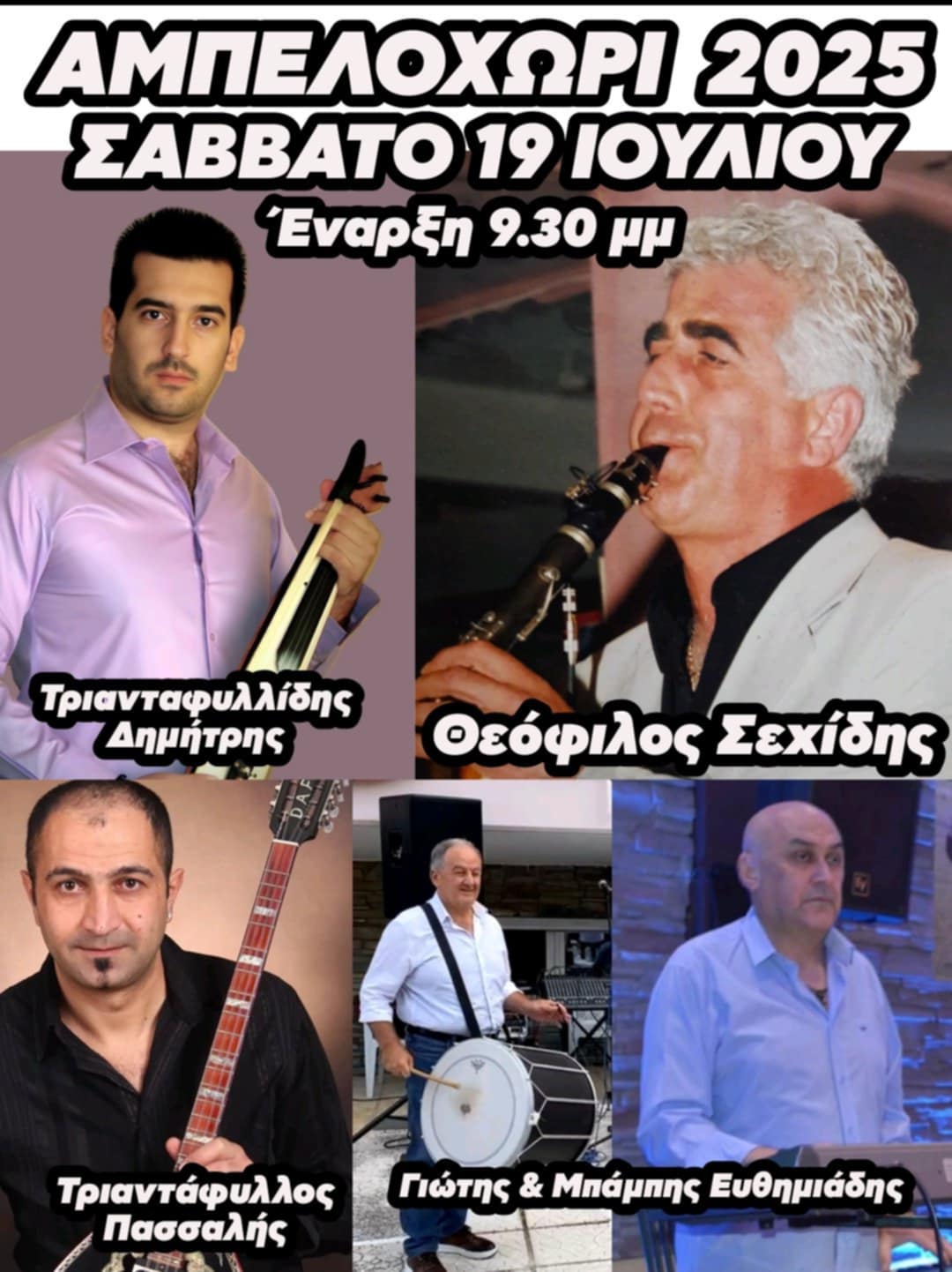 18-19 Ιουλίου 2025 | Υπαίθριες Πολιτιστικές Εκδηλώσεις στο Αμπελοχώρι!