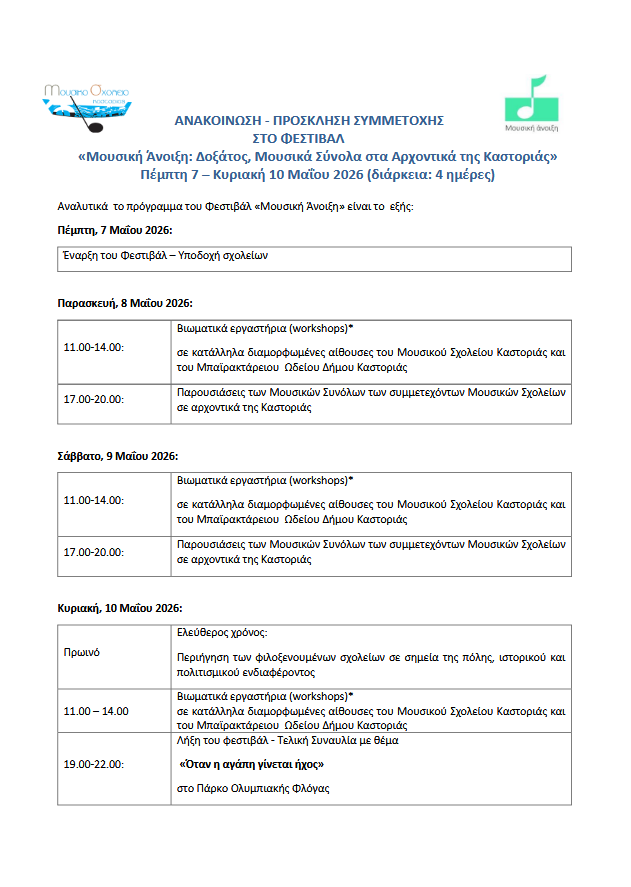 7–10 Μαΐου 2026| η Μουσική Άνοιξη ξανά στην Καστοριά!